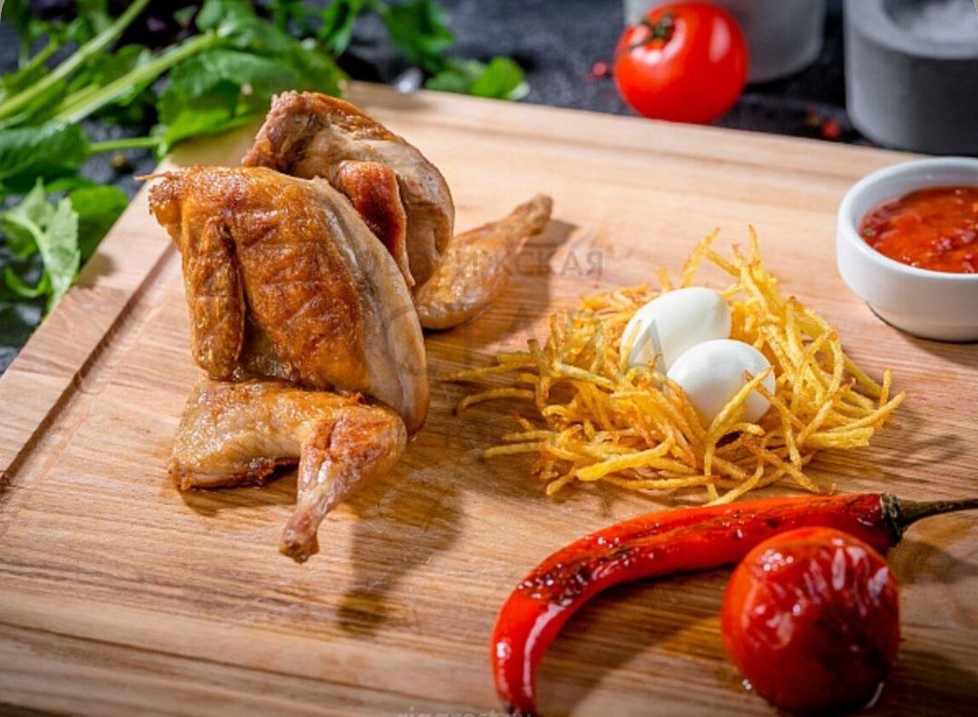 Перепелка на углях с картошкой фри с доставкой в г. Клин